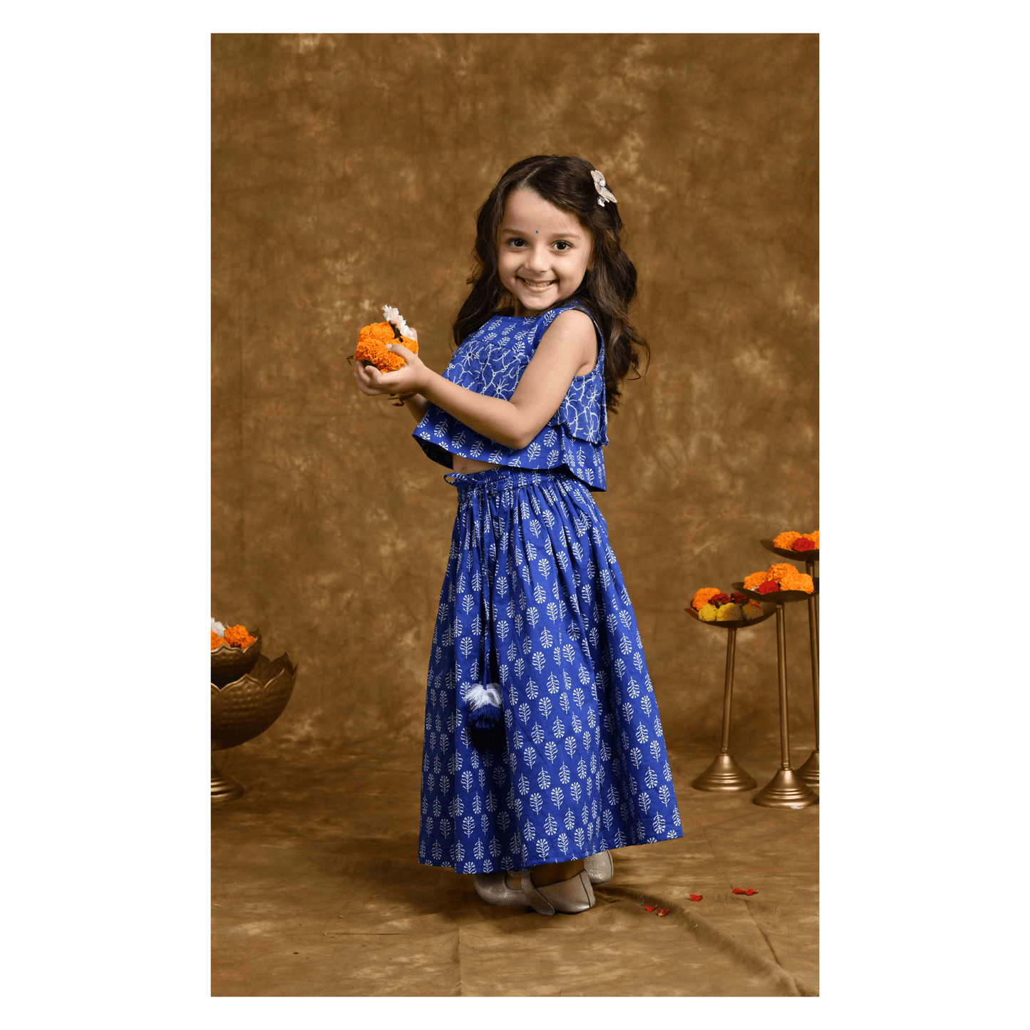 For Girls: Pocomico offers vibrant lehenga sets with mirror work, gota borders, and twirl-worthy skirts. Dupattas are kept light so they don’t get in the way during dancing.