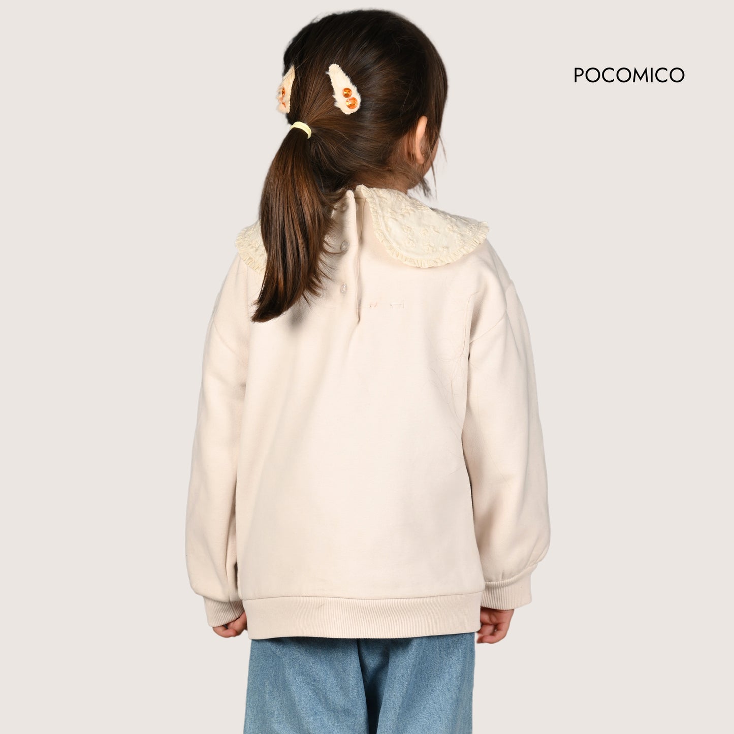 Your little doll will adore our Vintage Doll Pullover, an exquisite blend of comfort and elegance perfect for little fashionistas. Featuring a delicate peter pan lace collar that adds a classic, vintage touch, this soft fleece sweatshirt keeps your child warm without compromising on style.