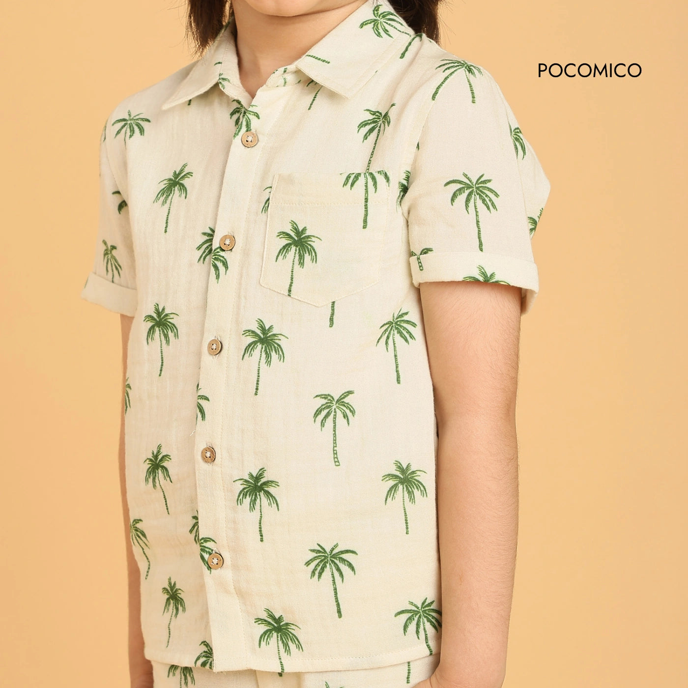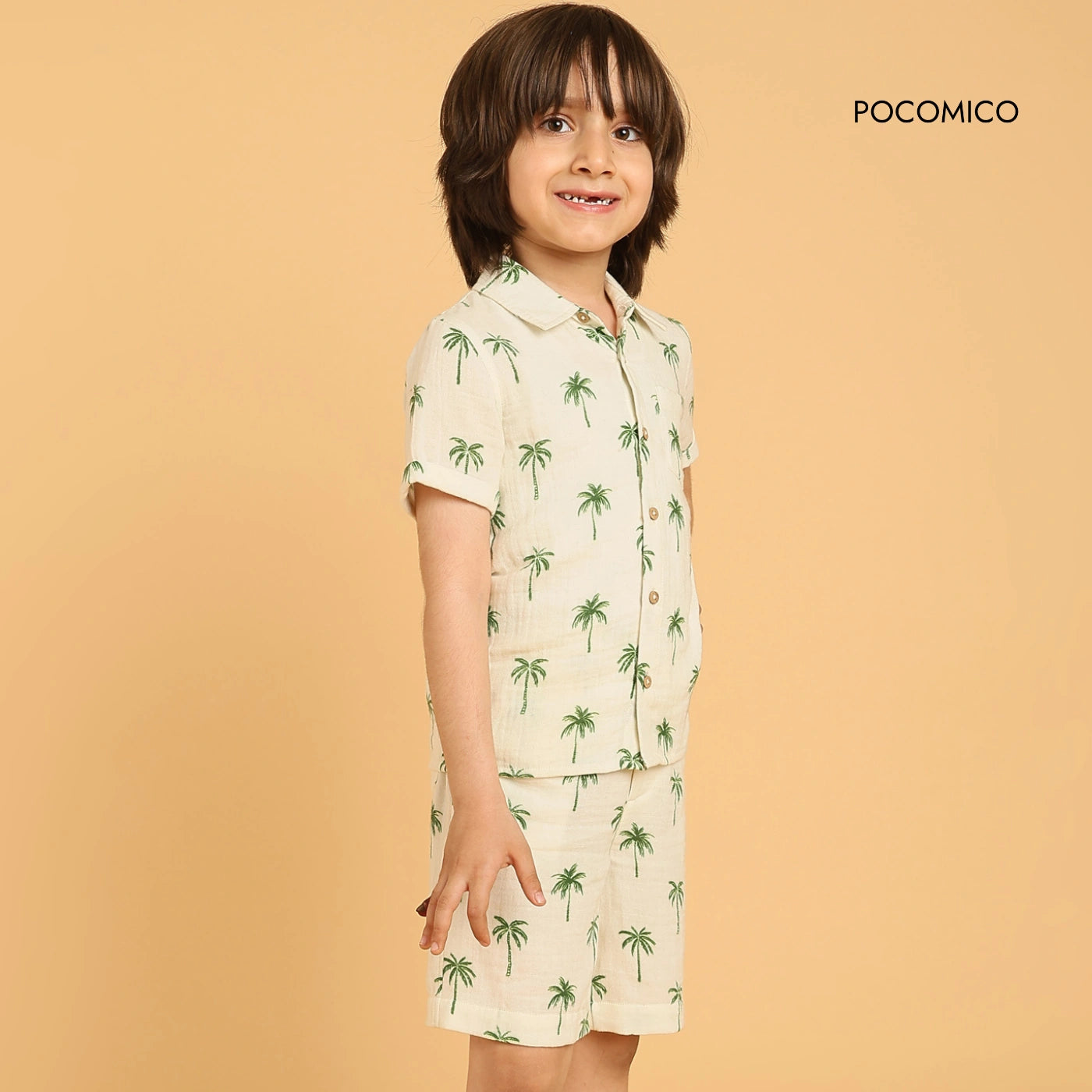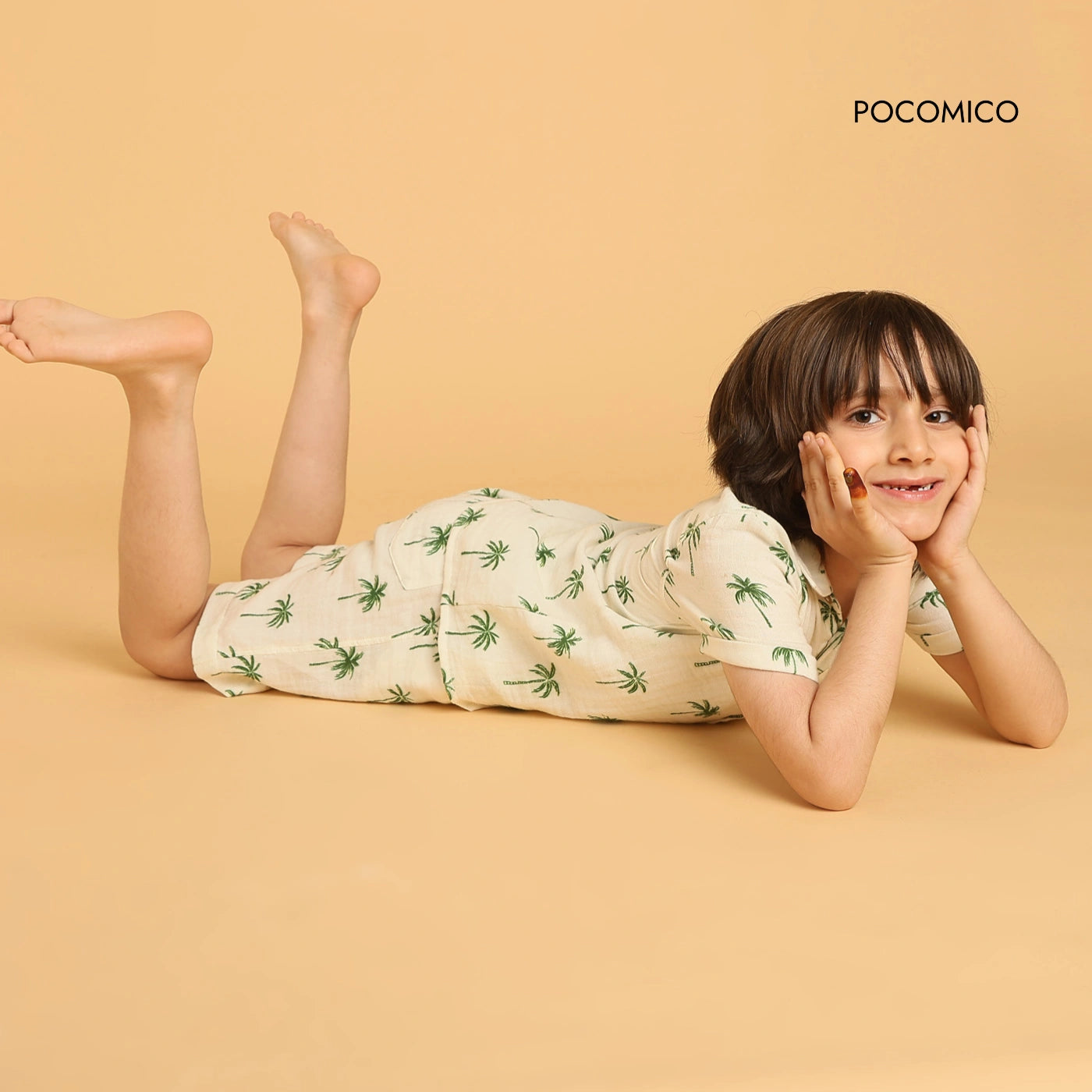 This Jungle Joy Co-ord Set brings a fresh tropical vibe with its playful palm tree print. The matching shorts set in cotton gauze makes this set super soft, breathable, and perfect for all-day wear. Whether it’s a fun day out or a cozy evening at home, this set is effortlessly stylish and easy to dress up with sneakers or sandals!