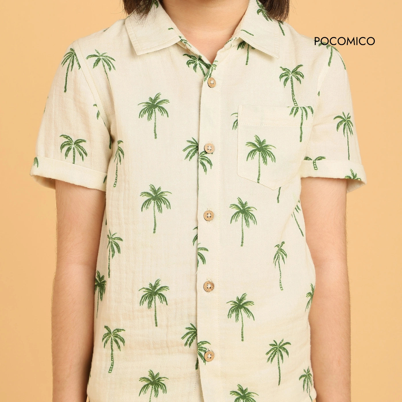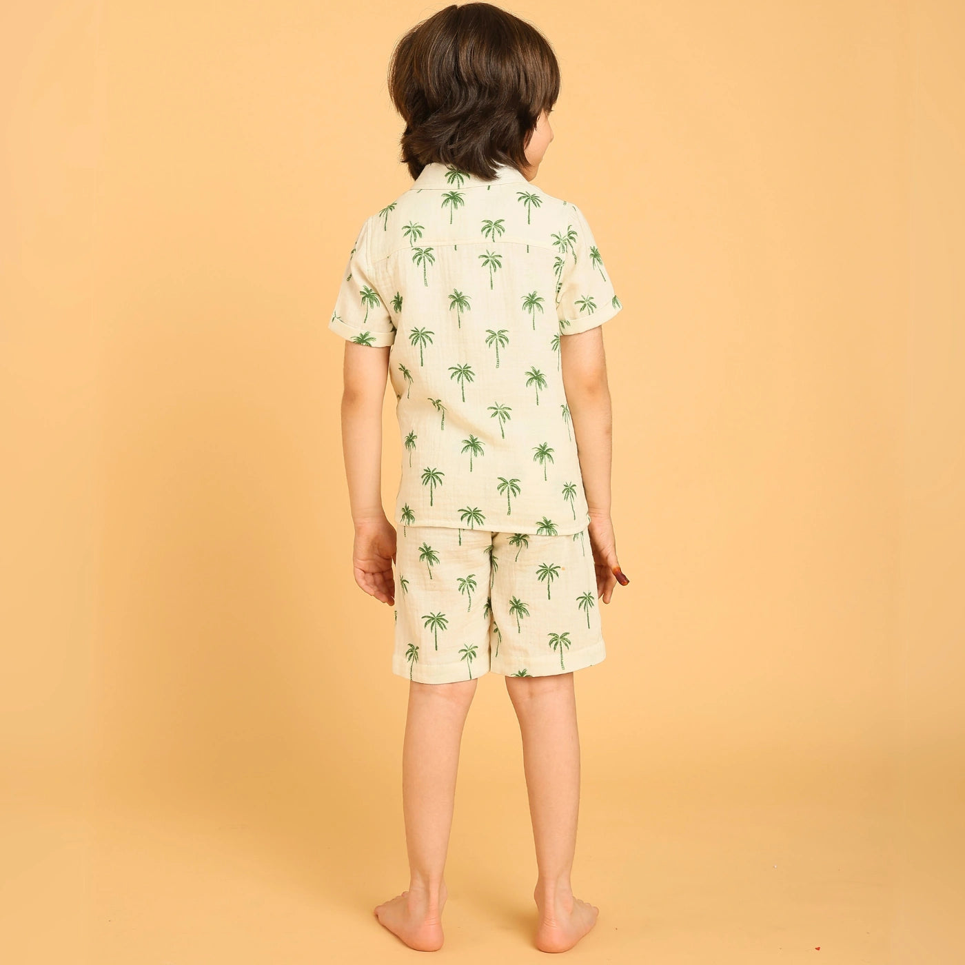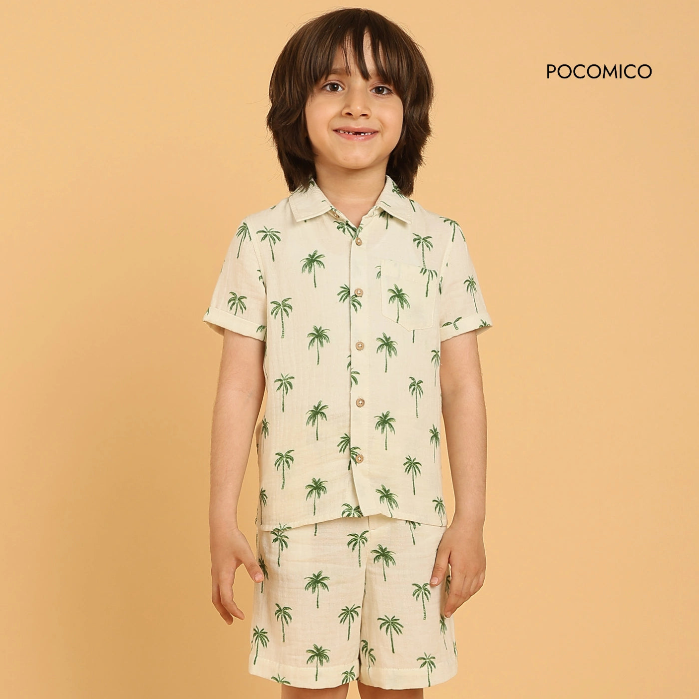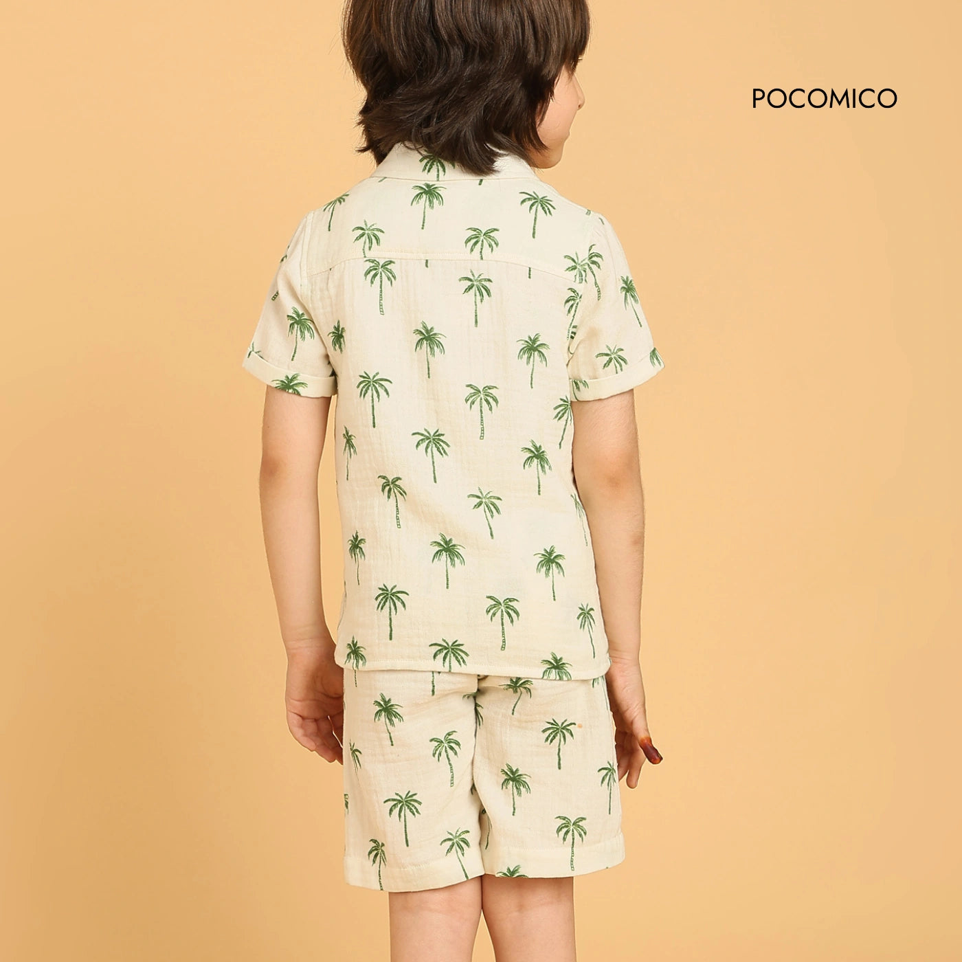 This Jungle Joy Co-ord Set brings a fresh tropical vibe with its playful palm tree print. The matching shorts set in cotton gauze makes this set super soft, breathable, and perfect for all-day wear. Whether it’s a fun day out or a cozy evening at home, this set is effortlessly stylish and easy to dress up with sneakers or sandals!