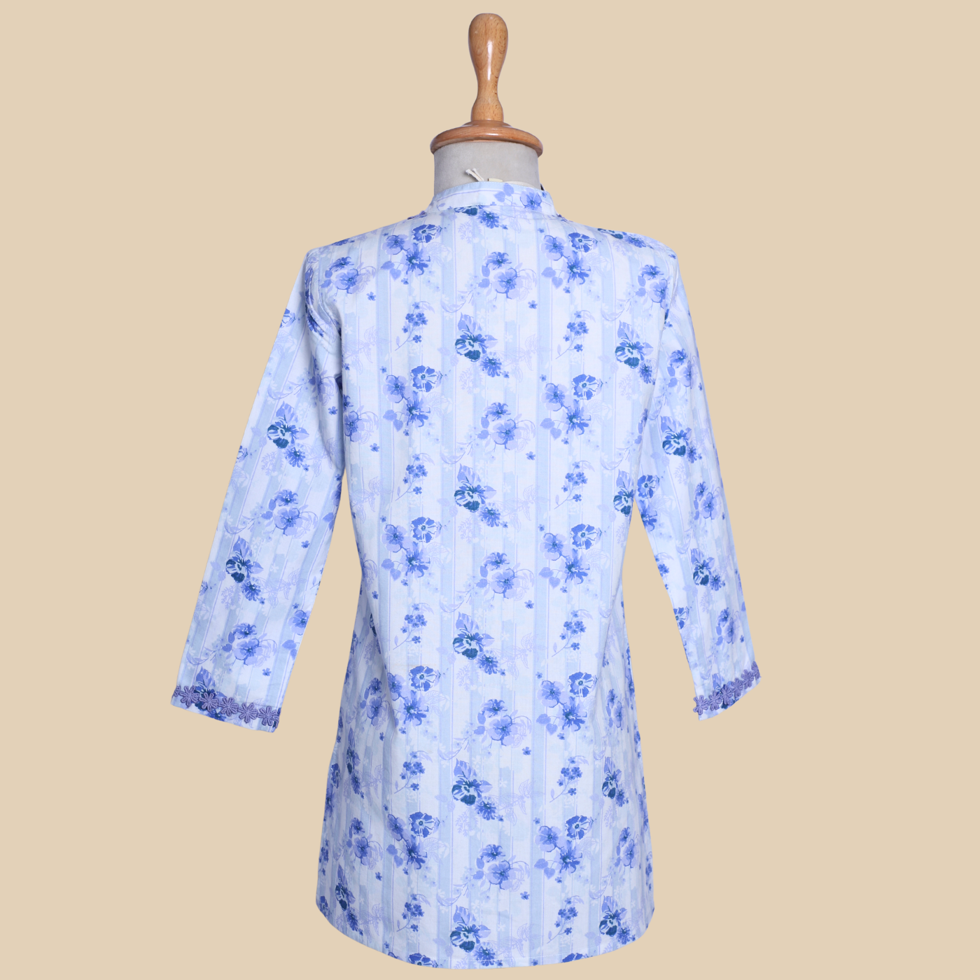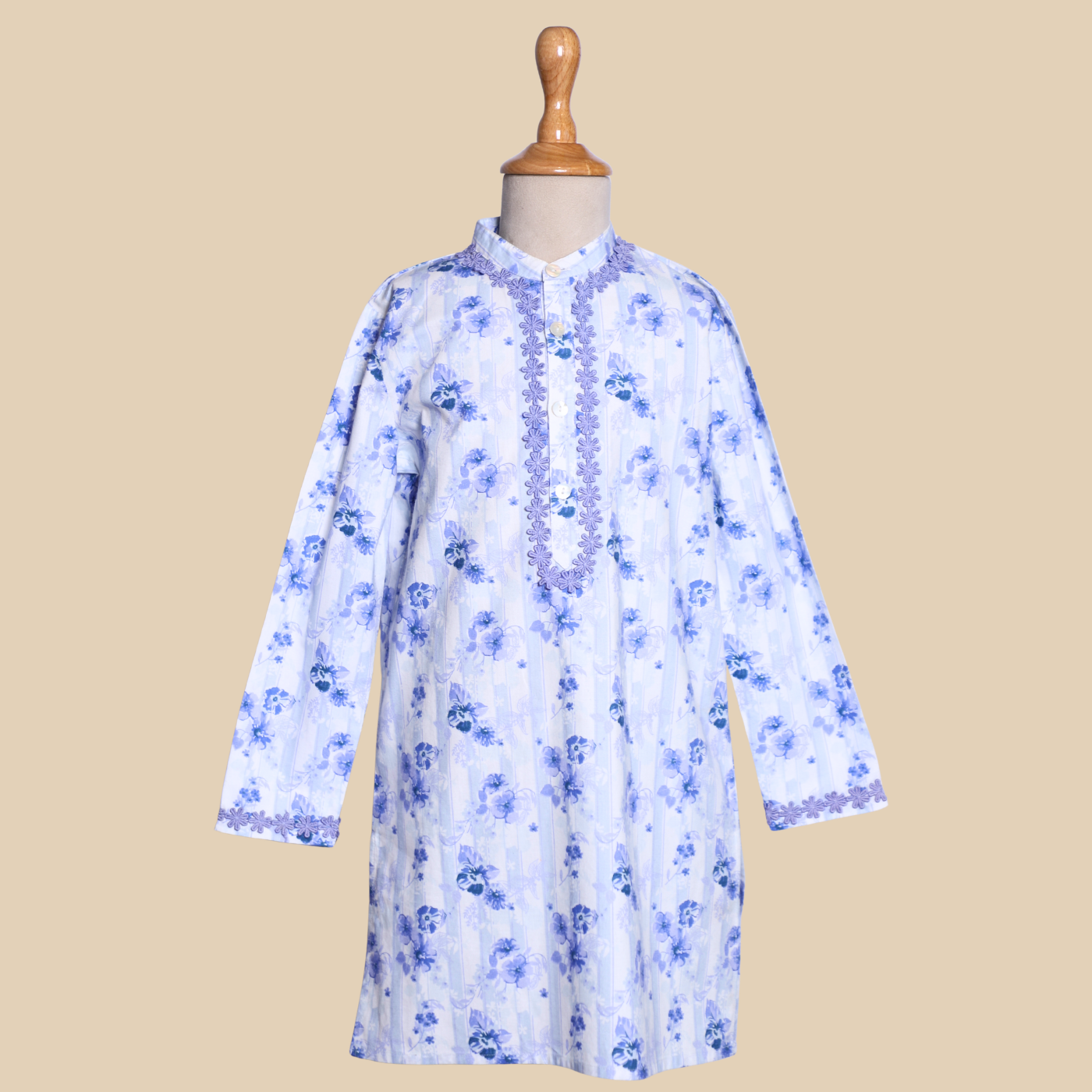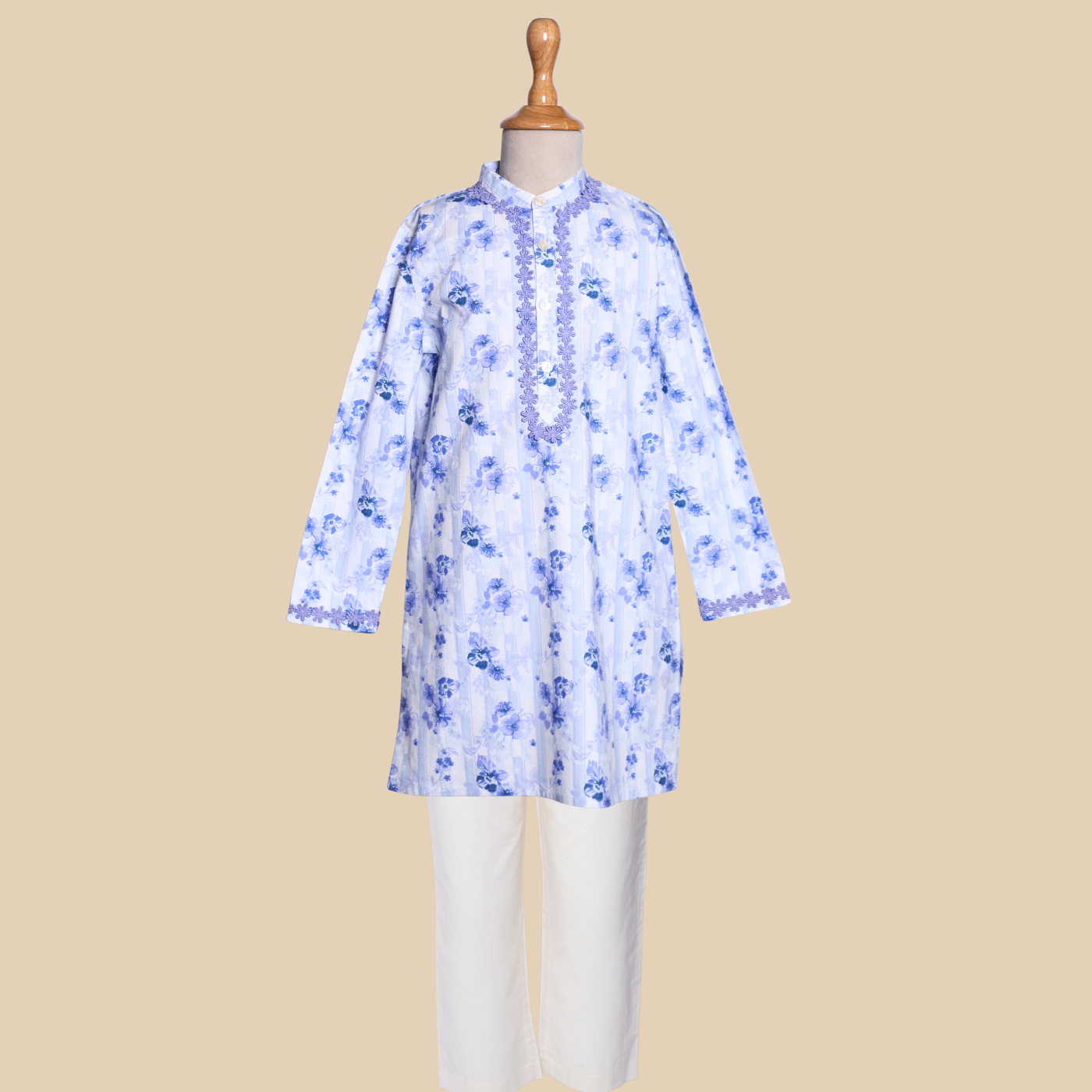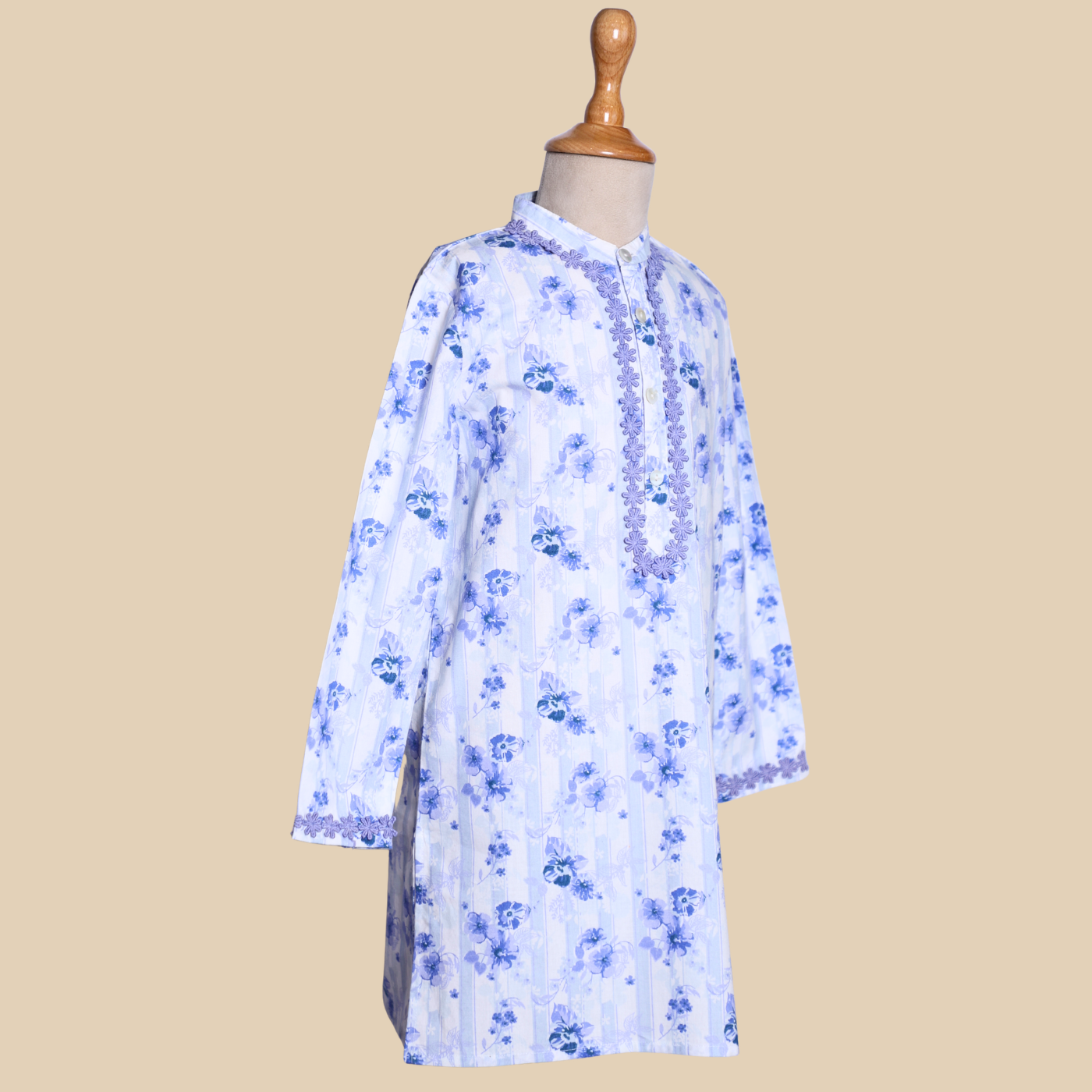 The Arin Bloom Kurta Set feels gentle, fresh, and perfect for warm-weather dressing. Crafted from 100% BCI-certified cotton, it offers a breathable and comfortable fit for long hours of wear. The soft blue floral print gives the kurta a calm, spring-like feel, while the simple silhouette keeps the outfit easy to wear. Paired with a clean bottom, this set works beautifully for daytime festive events, family functions, and relaxed summer celebrations.