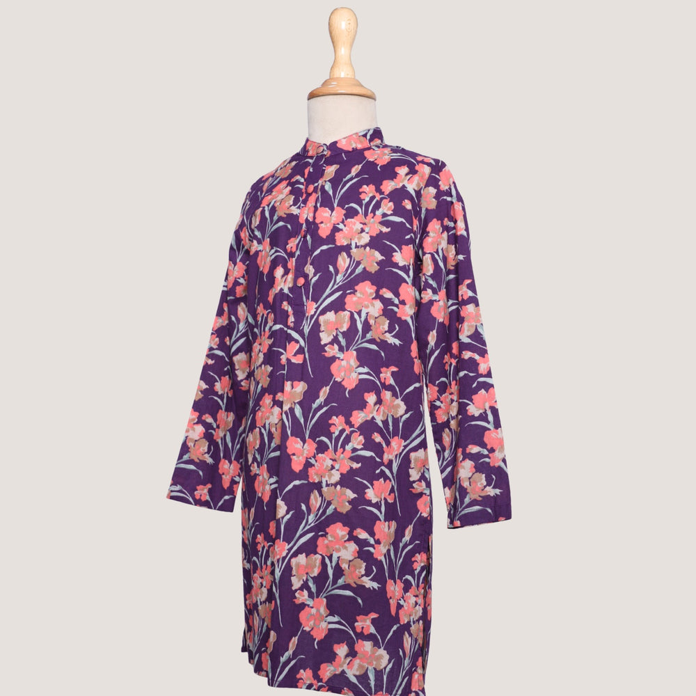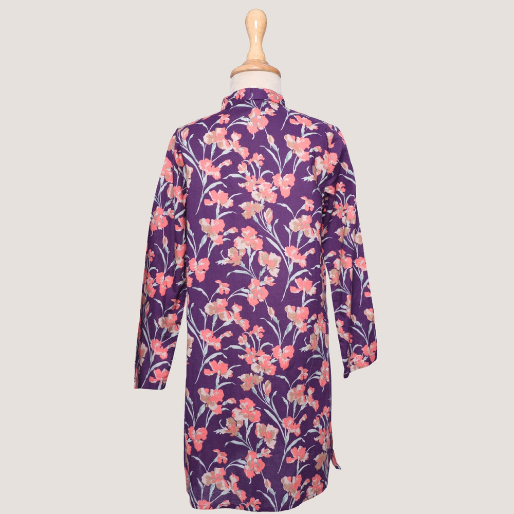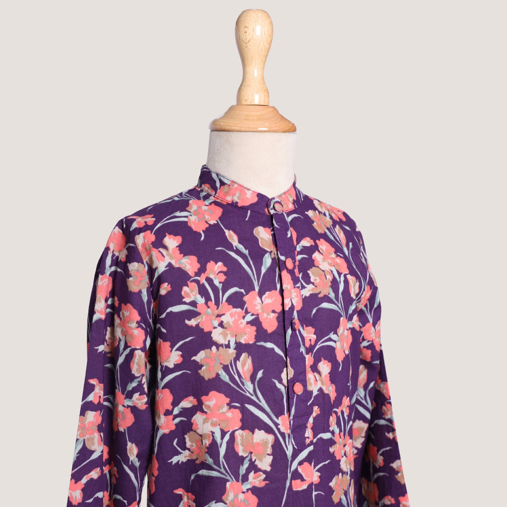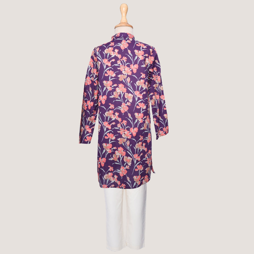 Your little boy will radiate festive charm in the Majestic Mauve Kurta Set. Made from soft 100% BCI cotton, this set ensures ultimate comfort while exuding royalty with its rich purple colour and intricate floral print. The deep mauve shade and delicate detailing make this outfit a perfect choice for festive celebrations, offering both elegance and ease. The Majestic Mauve Kurta Set not only looks regal but also provides the comfort needed for all-day wear, making it the ideal blend of luxury and practicality for special occasions.