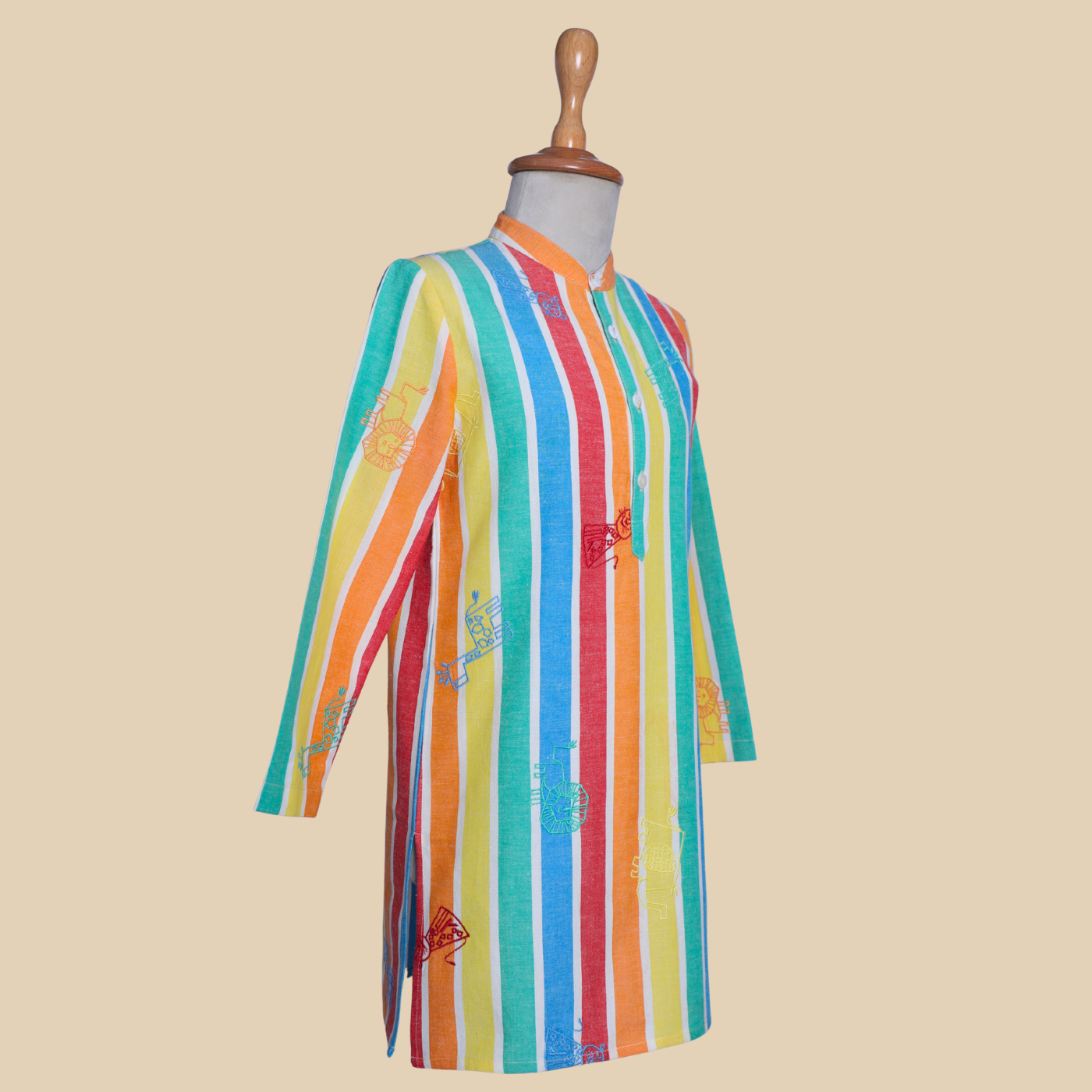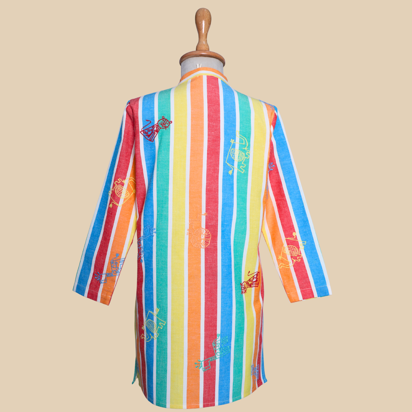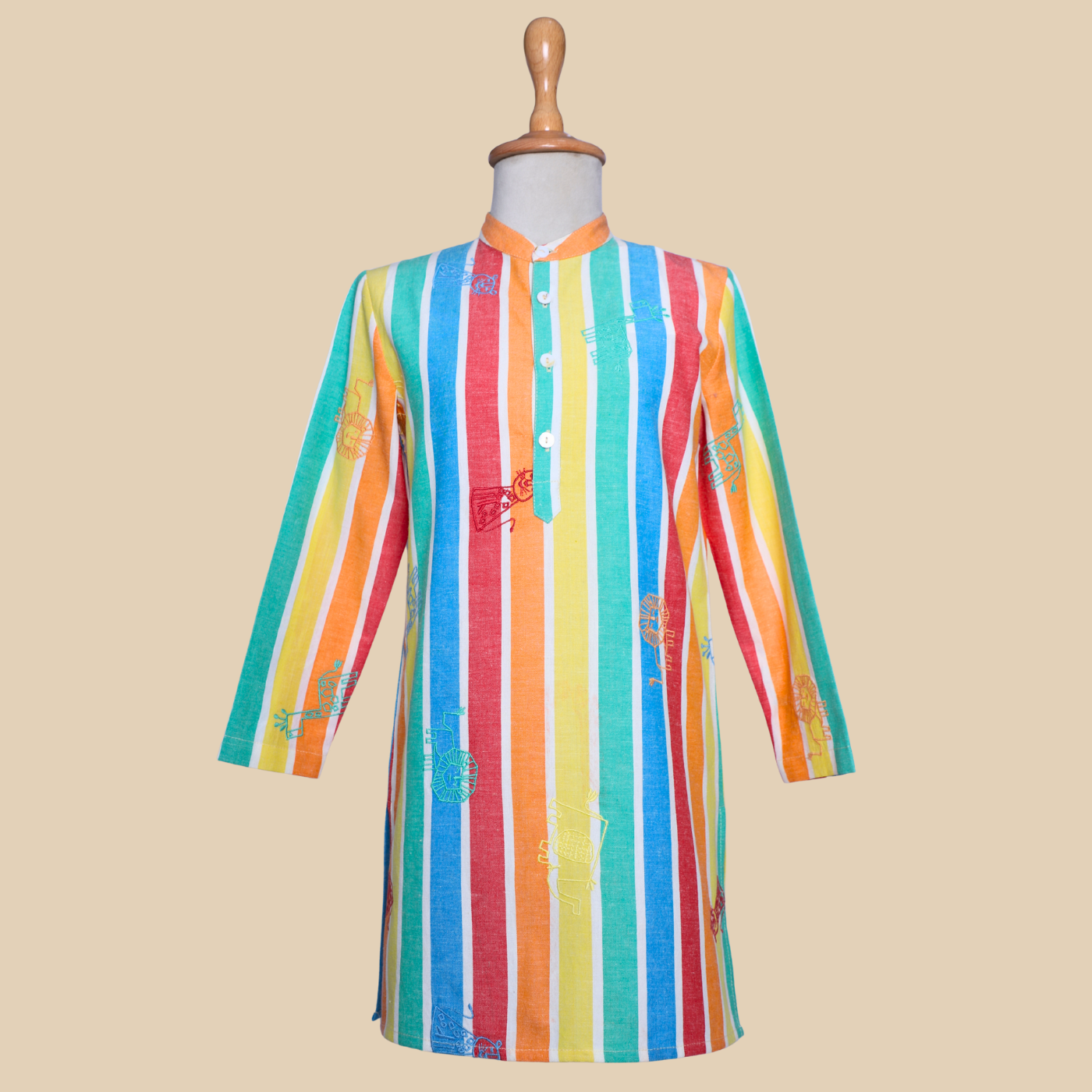 The Rang Lehar Kurta Set is a smart and cheerful choice for boys who enjoy something a little different. Made from 100% BCI-certified cotton, it feels light, soft, and comfortable all day long. The vertical multicolour stripes add energy and freshness to the look, while the straight kurta shape keeps it neat and wearable. Paired with a simple bottom, this set is ideal for summer celebrations, family gatherings, or any occasion where comfort and style should go hand in hand.