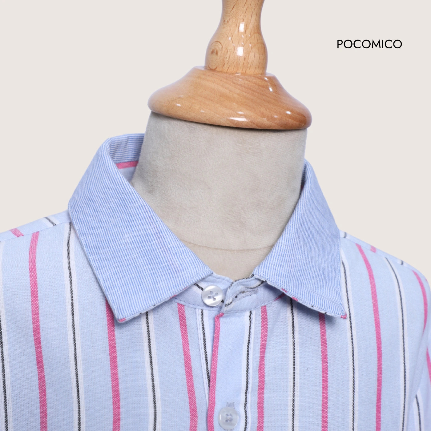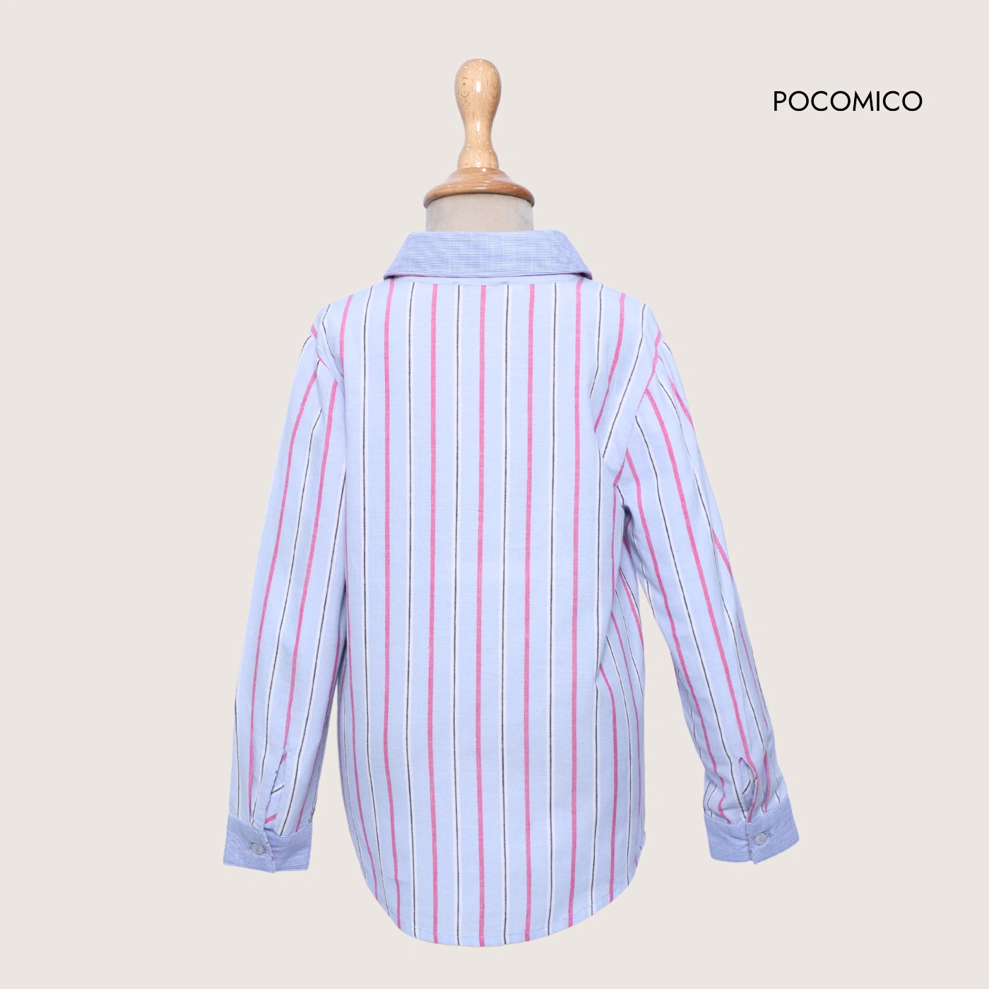 A classic look with a playful twist—meet our Playdate Stripes Shirt! Made from 100% cotton, this soft and breathable shirt is a must-have for every stylish young gentleman. The timeless striped pattern adds a touch of sophistication, while the relaxed fit ensures all-day comfort. Whether it’s for a fun outing or a special occasion, this shirt is the perfect pick for your little one!